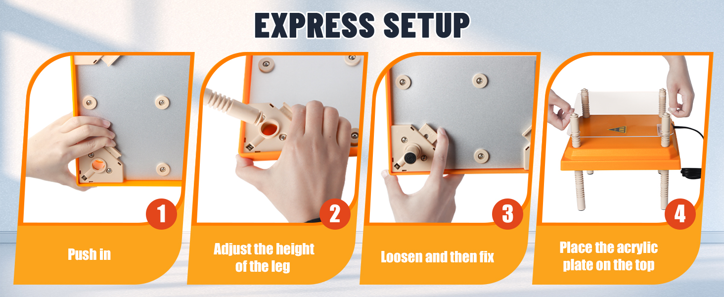 Easy to clean: This brooder has a removable acrylic plate on the top to prevent stains from adhering to the heater housing, reducing cleaning time and difficulty. Our brooder comes with a heating plate, four legs and acrylic plate, which is easy to install and use