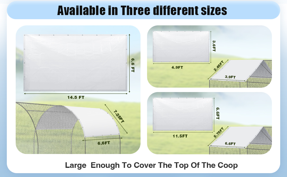 Quality Materials: the chicken coop cover is crafted from PE material, assuring you of its durability; It offers reliable protection against direct sunlight, rain, snow, and other external elements; It is the ideal protection for your hens, chickens, rabbits, ducks, and other small animals, shielding them from dust and weather changes; The quality material also contributes to the longevity of the product, hence you are assured of long term service