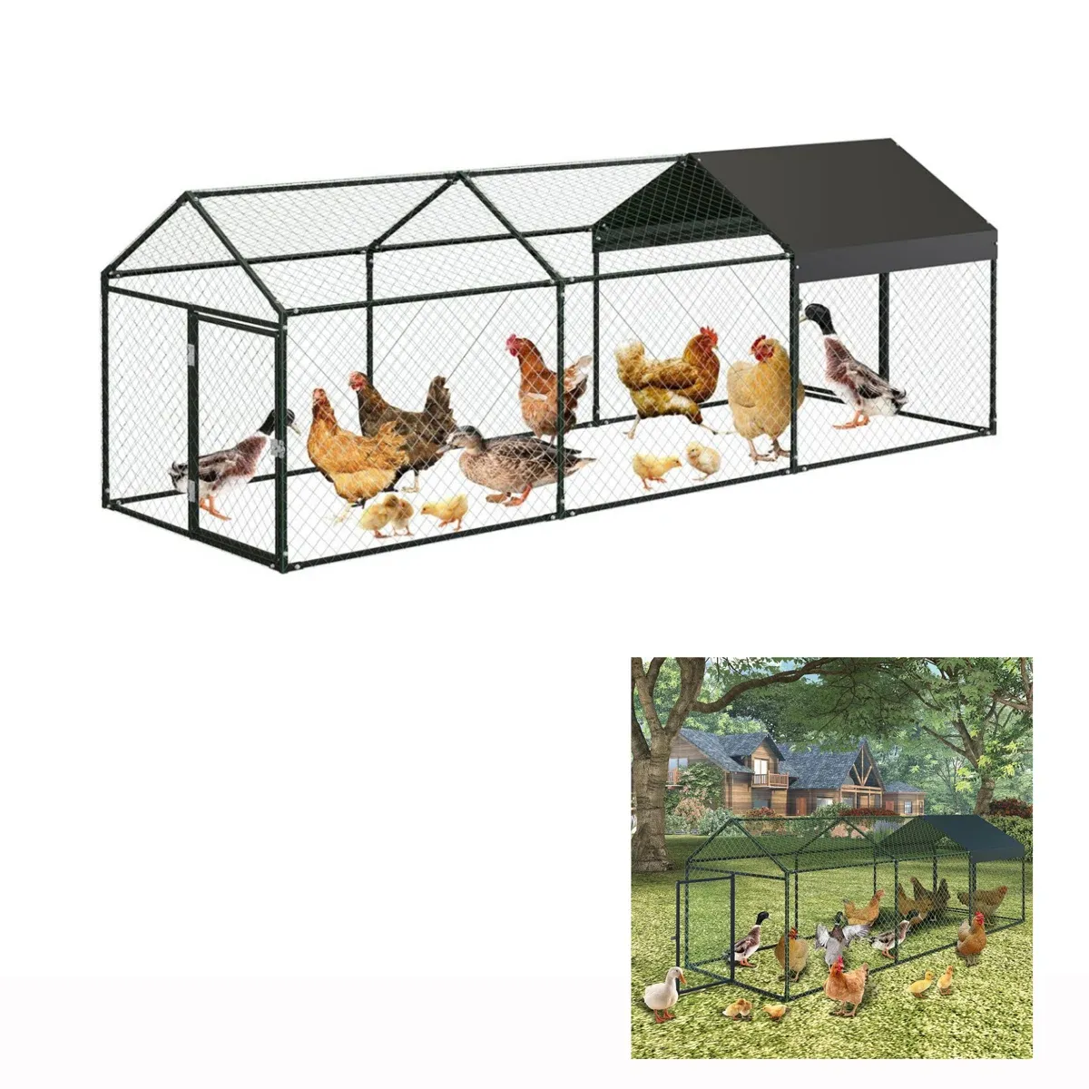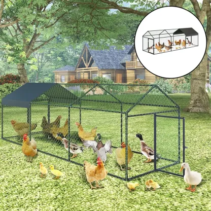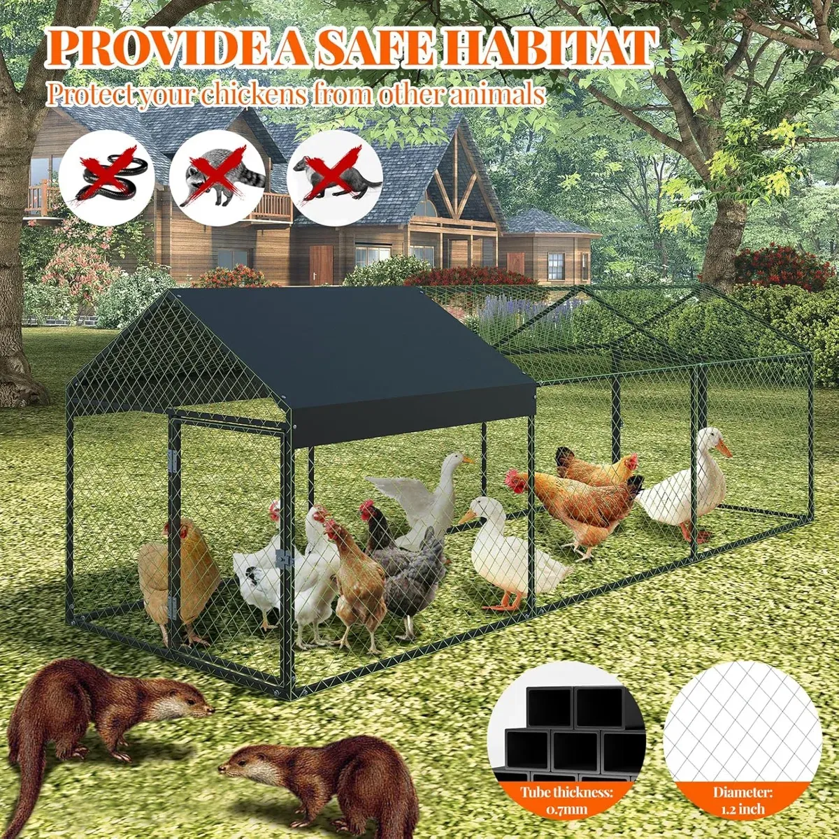 SUITABLE SPACE FOR 12-20 CHICKENS: This heavy duty metal chicken coop is made of high quality steel for enhanced stability, equipped with reinforced support columns and triangular support structure to ensure long-lasting durability, providing plenty of space for 12 to 20 chickens to move around comfortably.