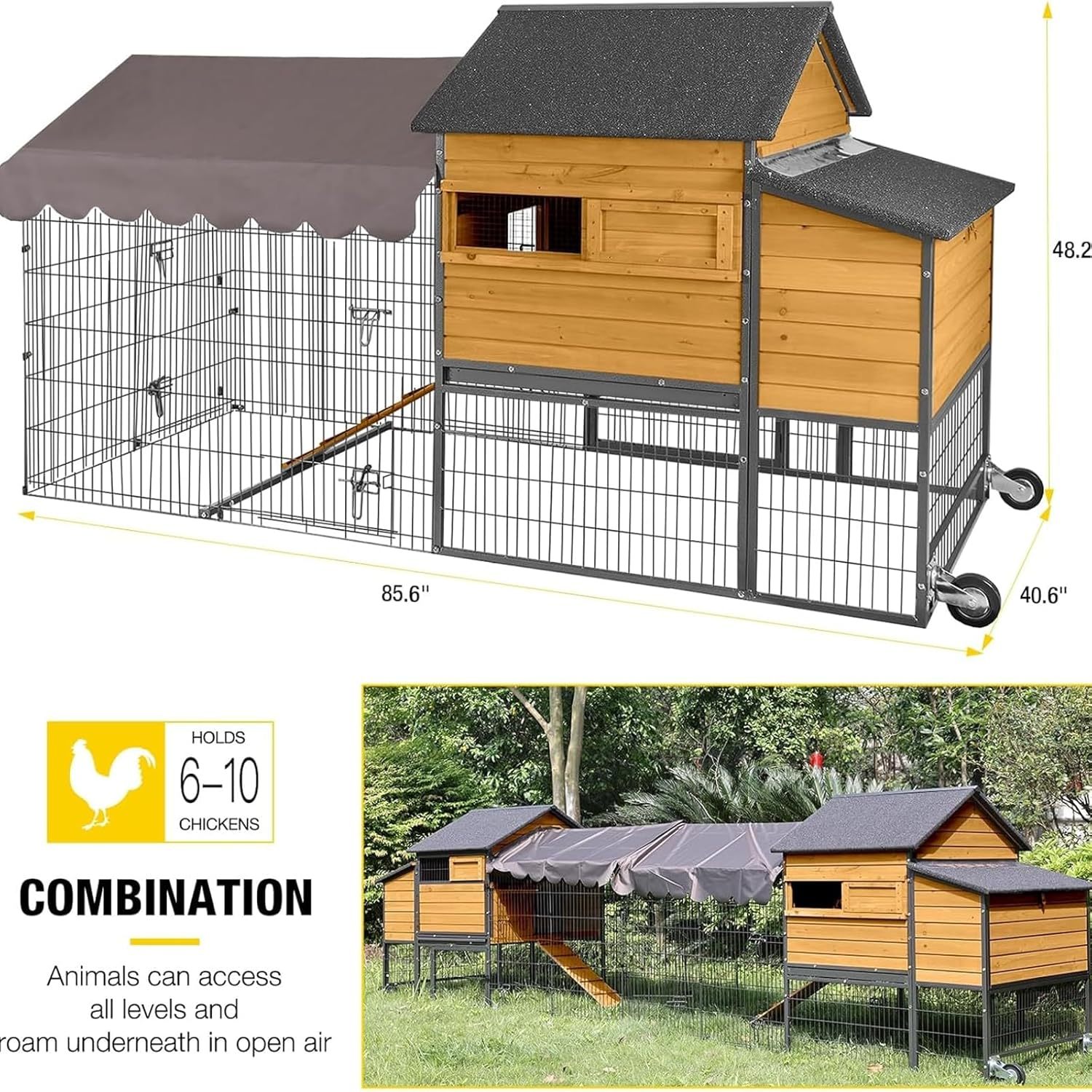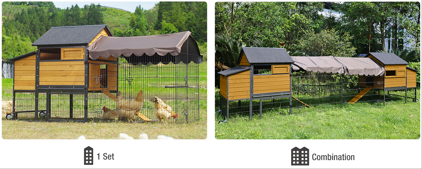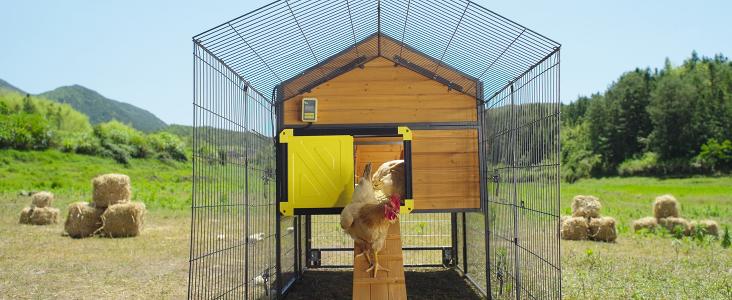 Our large METAL IRON FRAME chicken coop can attach the Automatic door freely to meet your request (The package include the automatic door)
