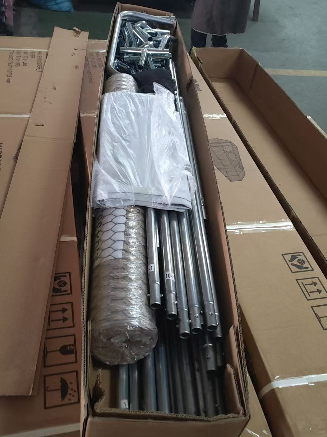 Give your feathered friends a space for exercise and play with the chicken coop! Suitable for non-climbing small animals including chickens, rabbits, ducks, and more. The solid construction and the covered chicken house allow your pets to stay protected from the elements. Suitable for outdoor use from sunny to rainy days.Features: Suitable for chickens, rabbits, ducks and more Keep pets safe and secure while they play Made with a solid galvanized pipe for a stable structure Metal hexagonal mesh protects your pets from predators and lets you keep an eye on them Use the chicken house cover to keep your feathered friends away from the elements Lockable galvanized door Can be used with wooden cages Assembly required, Assembly tools are included in the product.